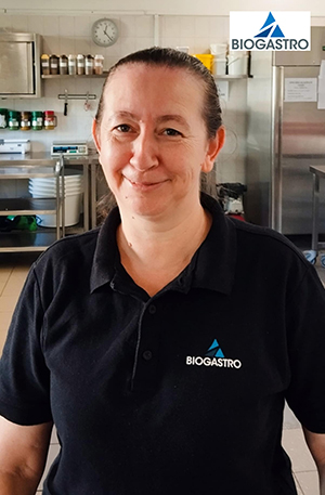 Nagy Angéla – Angi lassan öt éve a Biogastro Kft. óbudai csapatának tagja, szakács / tálaló pozícióban. Második éve gondoskodik az alsós diákok étkeztetéséről, és részt vesz az ételek elkészítésében is, déltől pedig az alsós gyermekeknek tálal, és figyel rá, hogy mindenki elégedetten, jóllakottan térhessen vissza az órákra.