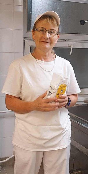 Nagy odafigyeléssel és őszinte szeretettel készíti a bölcsődés gyermekek és dolgozóink részére az ízletes és minőségi ételeket. Rendezvényeinken catering minőségű tálalást és gourtmet falatokat készít vendégeinknek, melyet mindig jóízűen fogyasztanak el. A munkát nem kerüli, sőt buzgón keresi hol és kinek tud még segíteni. Az ő keze alatt kosz, vagy élelmiszerbiztonsági hiba nem maradhat. Előrelátása figyelemre méltó; az étlapot figyelembe véve tervezi, hogy a nagyobb, nem a napi takarítást képző feladatokat mikor tudja ellátni, ezáltal a konyha könnyebben tudja tartani a NÉBIH által is elismert magas színvonalat. Takarítása alapos, minden apró részletre kitér, a HACCP előírásban foglaltakat gördülékenyen teljesíti.